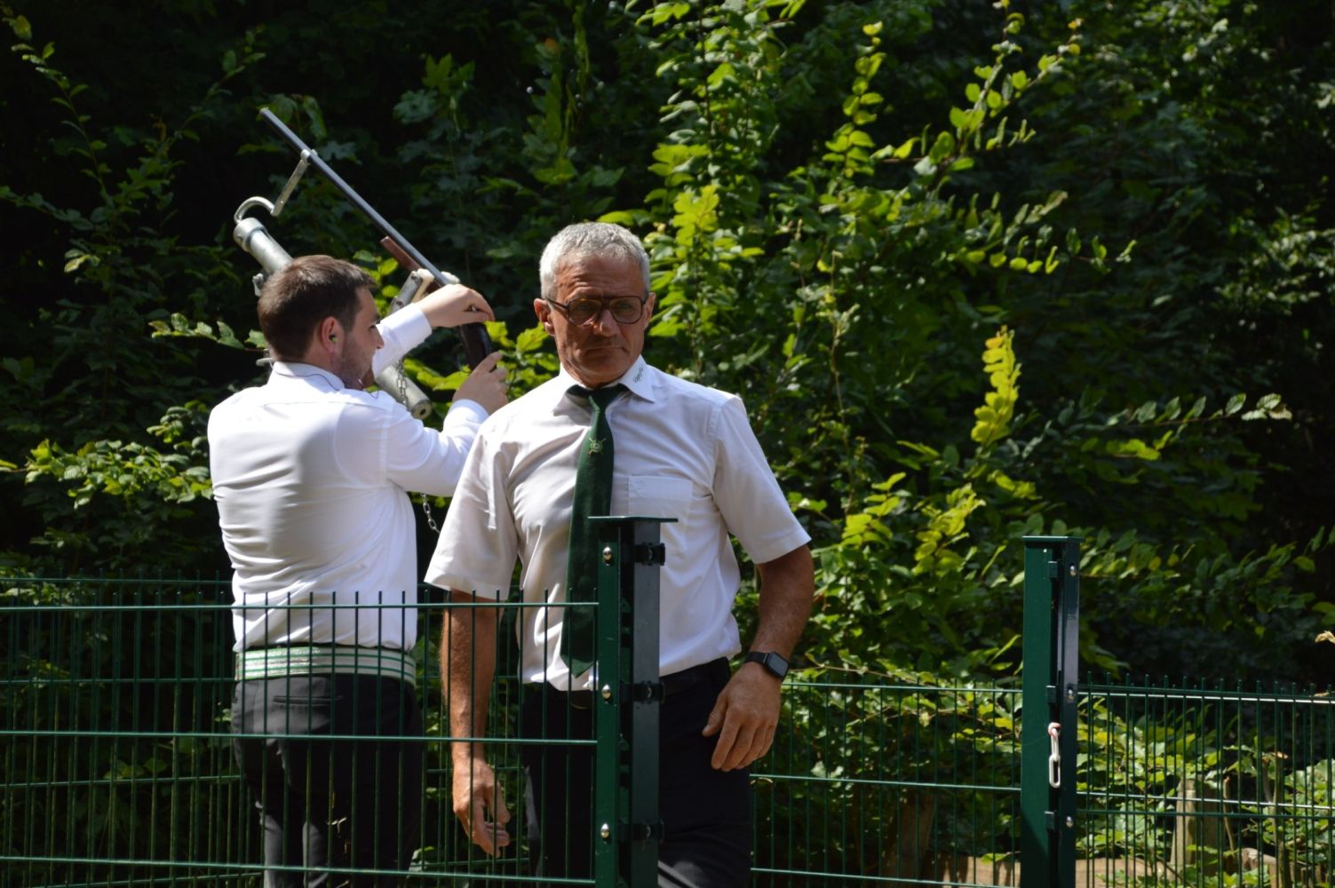 Der Samstag stand ganz im Zeichen des Schießens. Um 11:30 Uhr begann die Ausgabe der Schießkarten, ehe sich die Teilnehmer um 12:00 Uhr in der Schützenhalle zu Abmarsch zur Vogelstange versammelten.