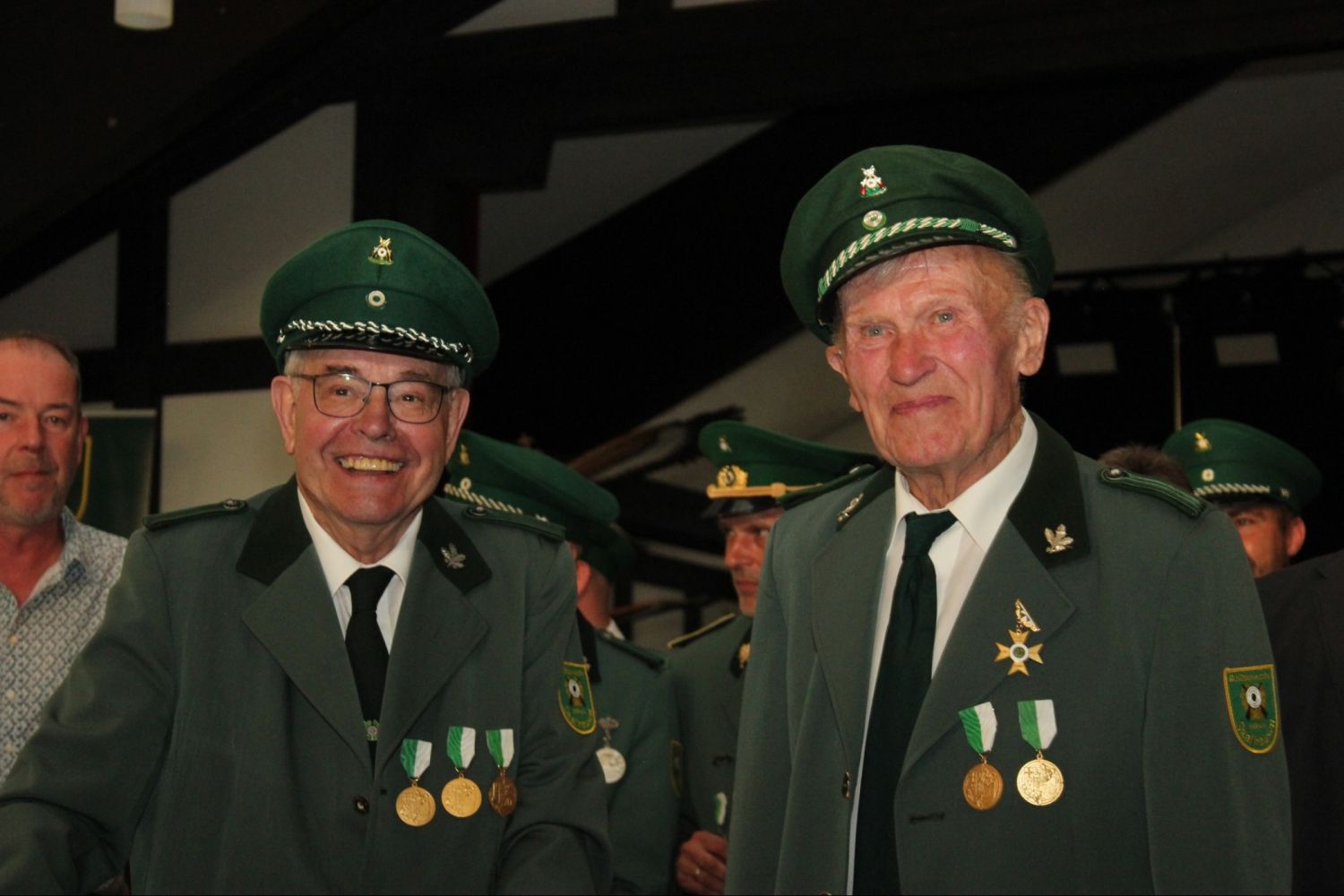 Mit dem Saalhauser Verdienstorden, einem Orden, der an diejenigen verliehen wird, die mit Ihrem Engagement den Schützenverein mit Leib und Seele über viele Jahre unterstützt haben. Ausgezeichnet mit diesem Orden wurden unser Herold Martin Hein und unser langjähriges Offizierskorps-Mitglied Josef Frese.