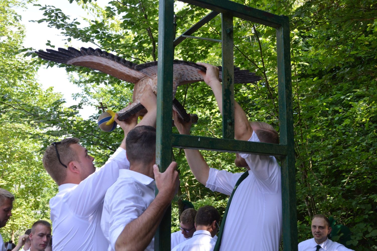 Traditionell wurde Mittwochs ab 17:00 Uhr die Schützenkrone aus Eichenlaub von unseren Offiziersfrauen gewickelt wurde. Das Material hatten zuvor die Jungschützen gesammelt und bereitgestellt. Direkt im Anschluss fand die traditionelle Vogelschau statt, bei der die neuen Schützenvögel präsentiert und die ersten Favoriten für das Schießen diskutiert wurden.