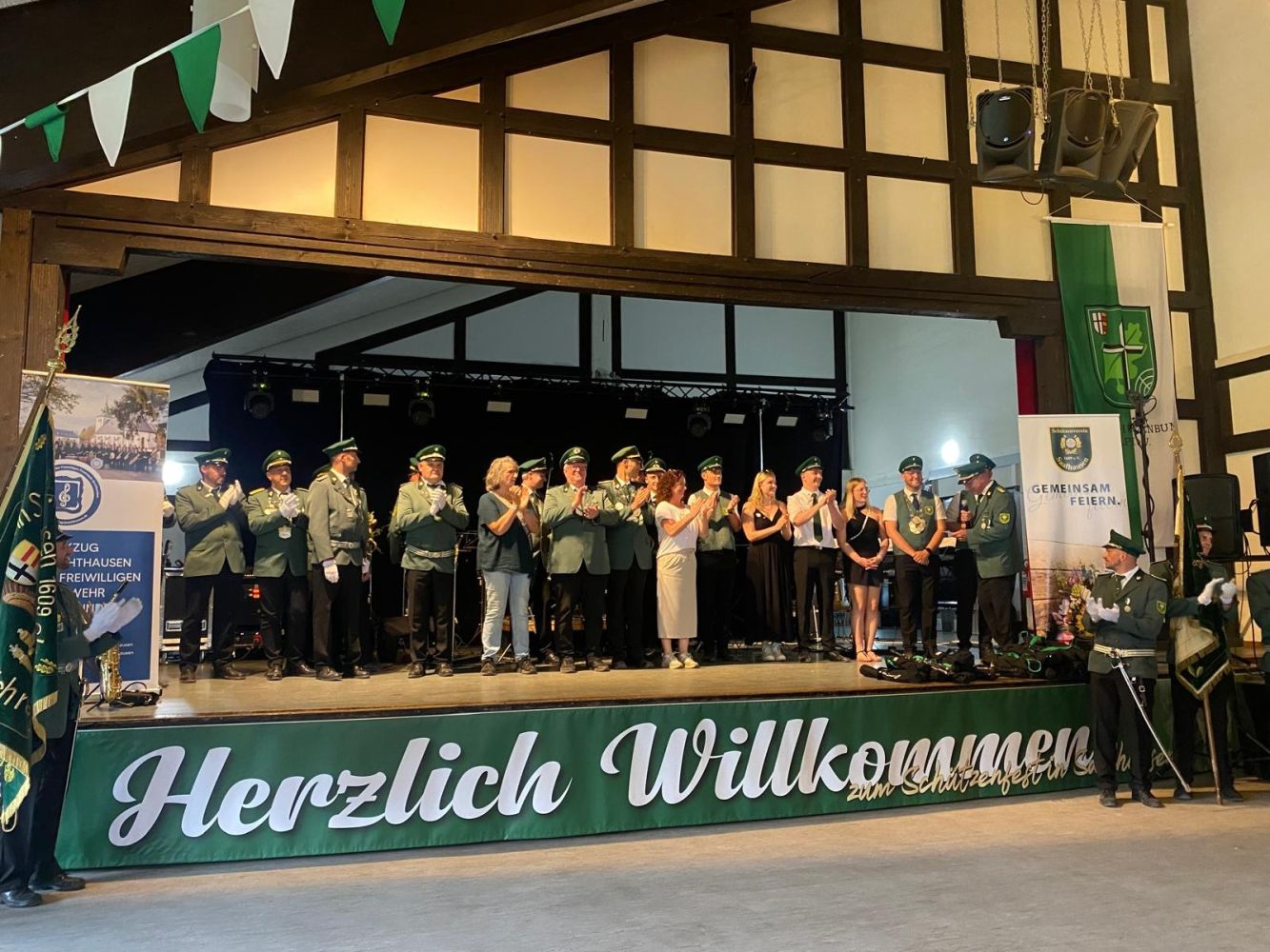 Parallel dazu liefen die Vorbereitungen in der Schützenhalle auf Hochtouren. Tische und Bänke wurden gerückt, Girlanden und Fahnen angebracht und die Halle Schritt für Schritt in einen stimmungsvollen Festsaal verwandelt.