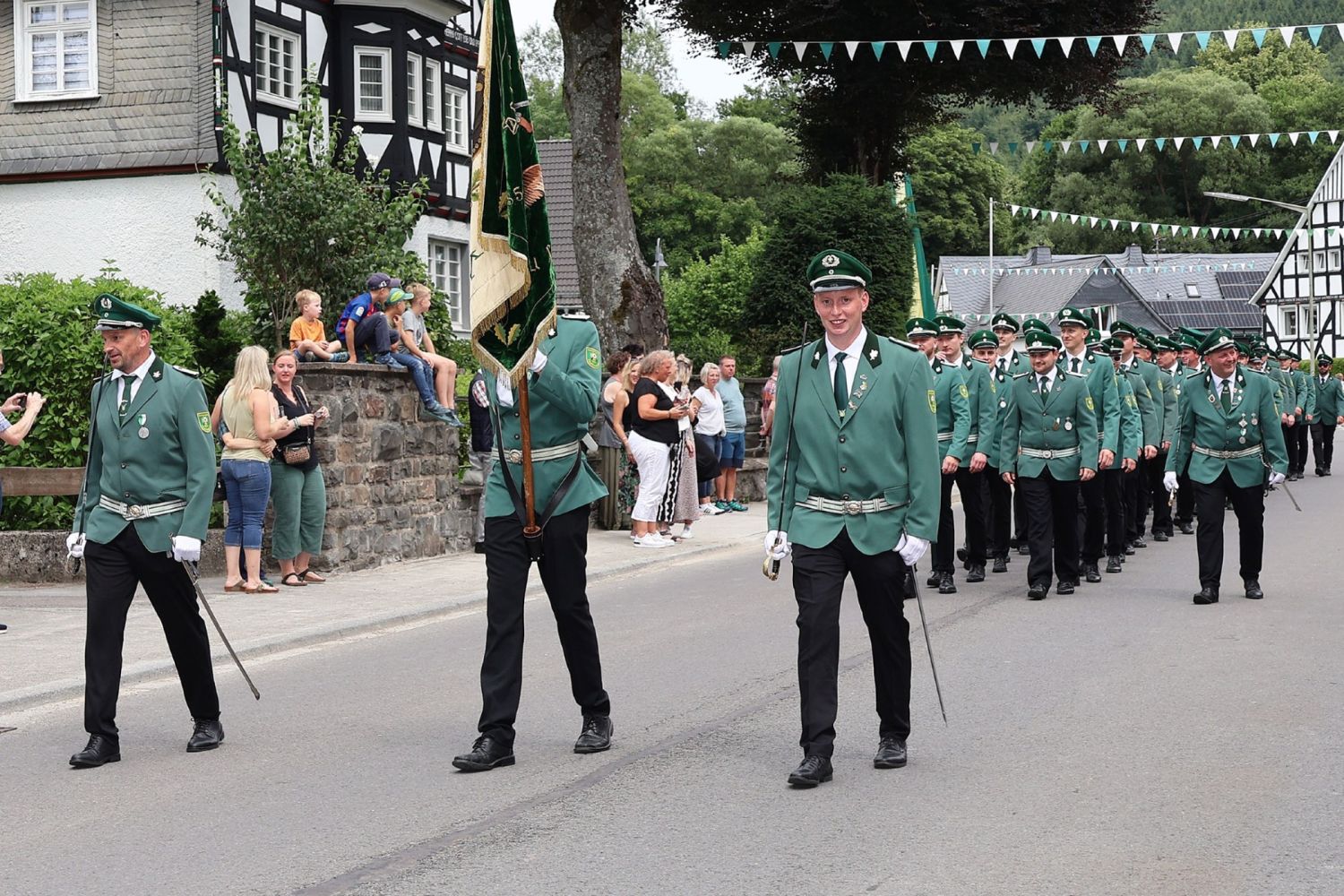 Die Schützenfestwoche begann am Montagabend mit dem traditionellen Aufhängen der Wimpel im Dorf.
